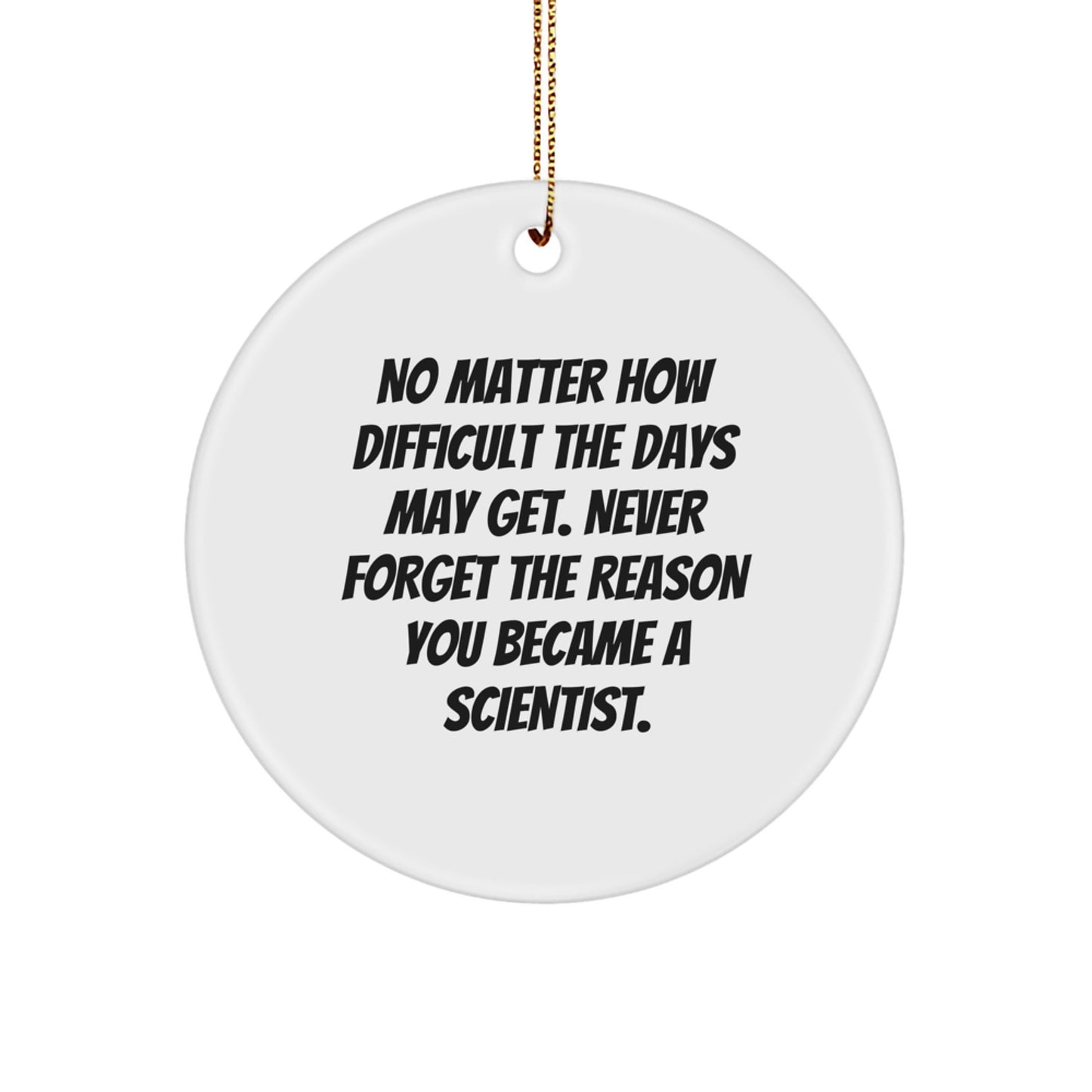 - This circle ornament is a beautiful and inspiring gift for any scientist. It is a reminder that no matter how difficult the days may get, they should never forget the reason they became a scientist. It is a great way to encourage and motivate them to continue their work.