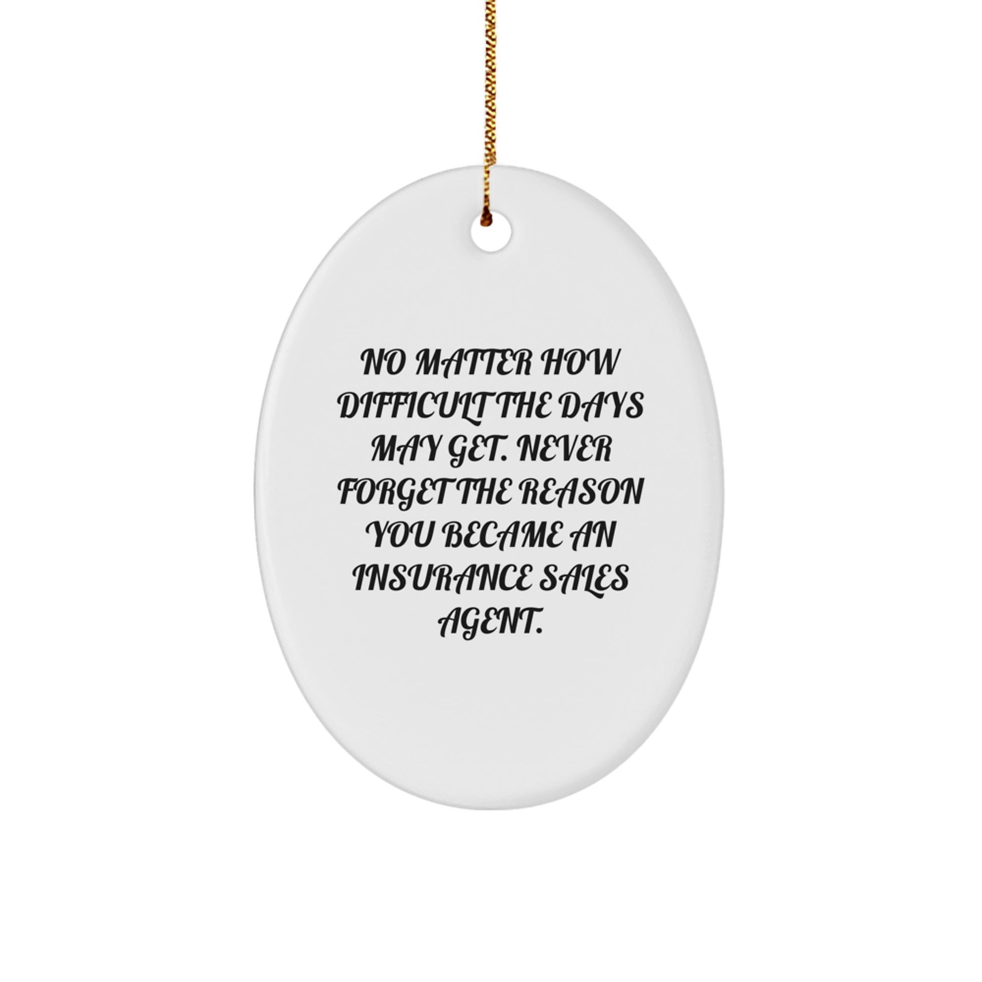 Insurance Sales Agent Oval Ornament Gifts from Family, Friends, or Coworkers - 'Never Forget The Reason You Became An Insurance Sales Agent.'