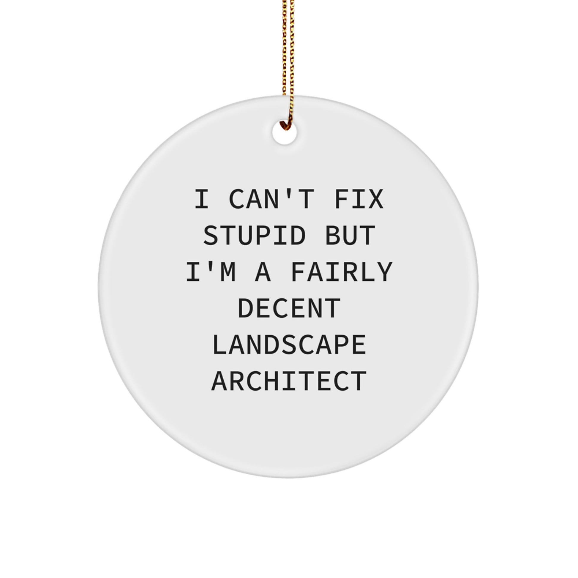 Landscape Architect Gifts, Funny Quote Circle Ornament, 'I Can't Fix Stupid But I'm A Fairly Decent Landscape Architect' Christmas Ornaments for Men, Women, Friends, Family, Coworkers