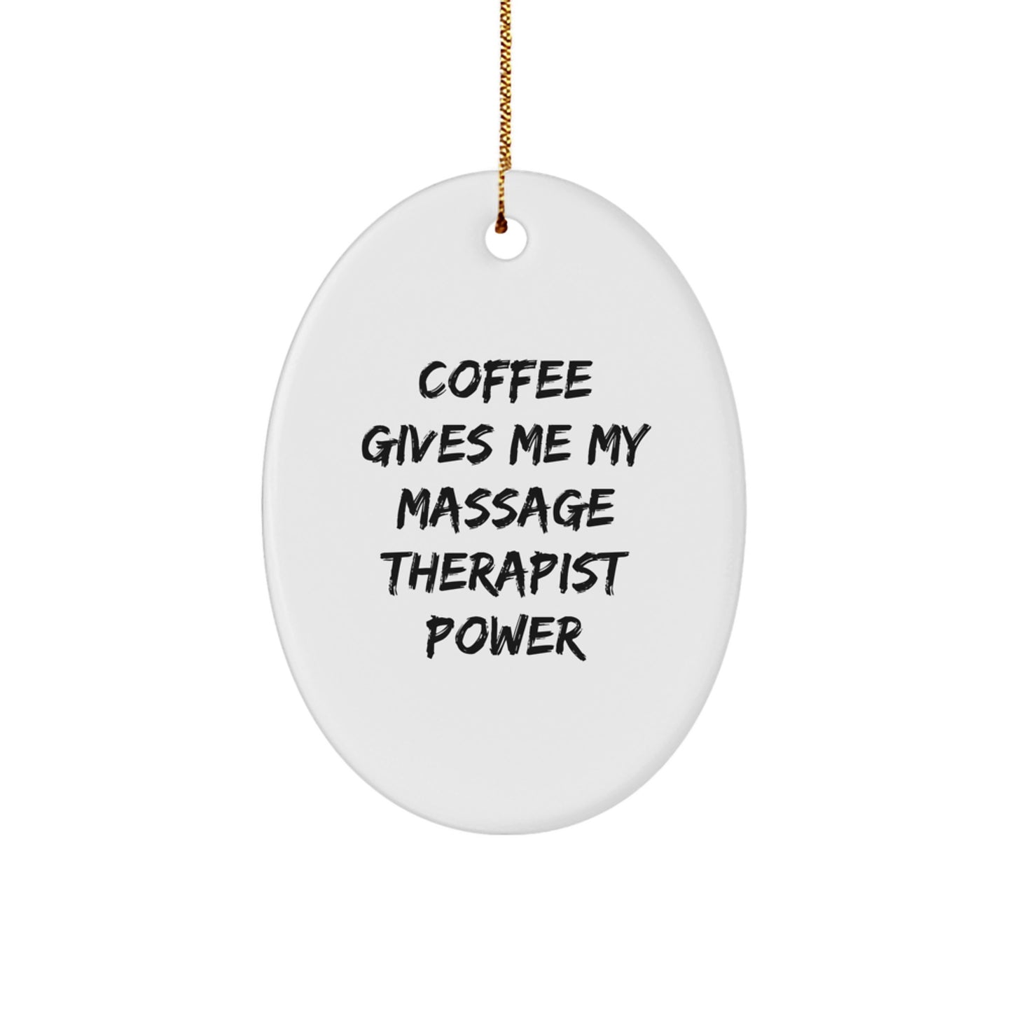 Are you looking for a unique gift for your favorite Massage Therapist? Look no further! This Oval Ornament is a perfect way to show your appreciation for their hard work and dedication. The quote 'Coffee Gives Me My Massage Therapist Power' is a funny and relatable phrase that any Massage Therapist would love. It's a great conversation starter and can be hung in their office or home as a reminder of your thoughtfulness.