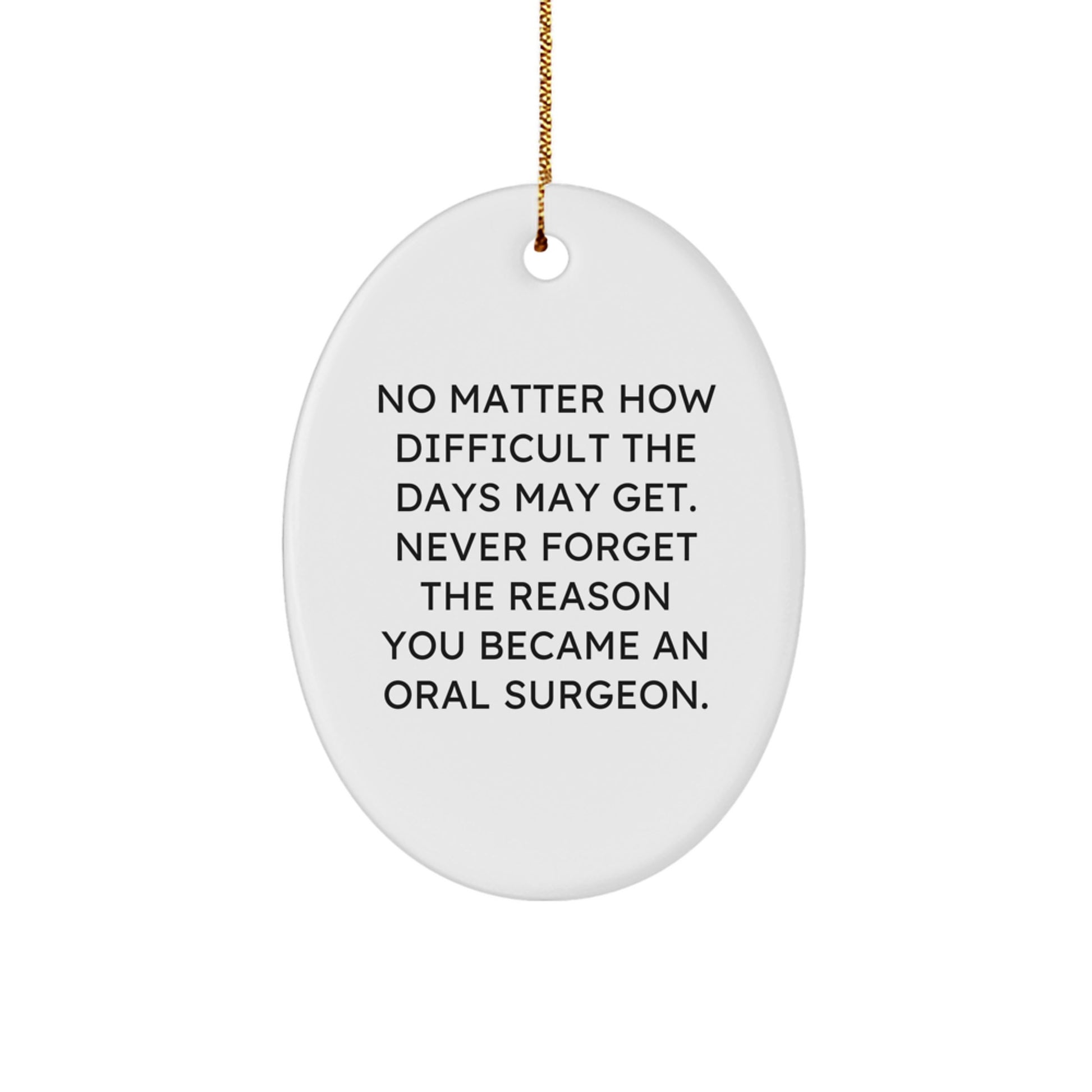 - This inspirational oval ornament is a great reminder of the challenges and rewards of being an Oral Surgeon. The quote 'No Matter How Difficult The Days May Get. Never Forget The Reason You Became An Oral Surgeon.' is a great way to show your appreciation for their hard work and dedication.