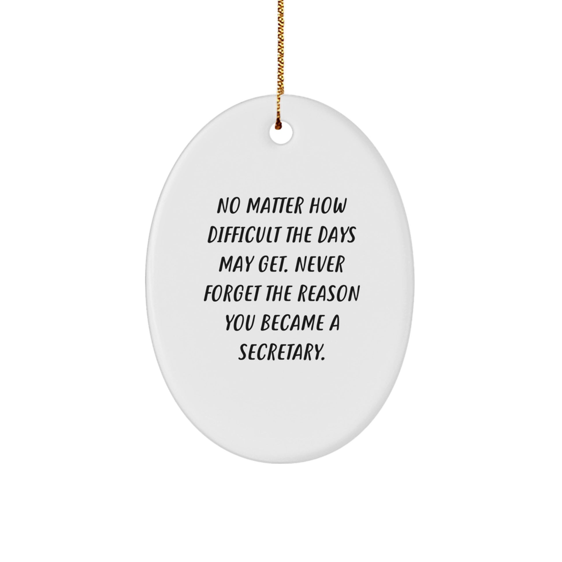 - This Oval Ornament is a thoughtful gift for your secretary, reminding them that no matter how difficult the days may get, never forget the reason they became a secretary.