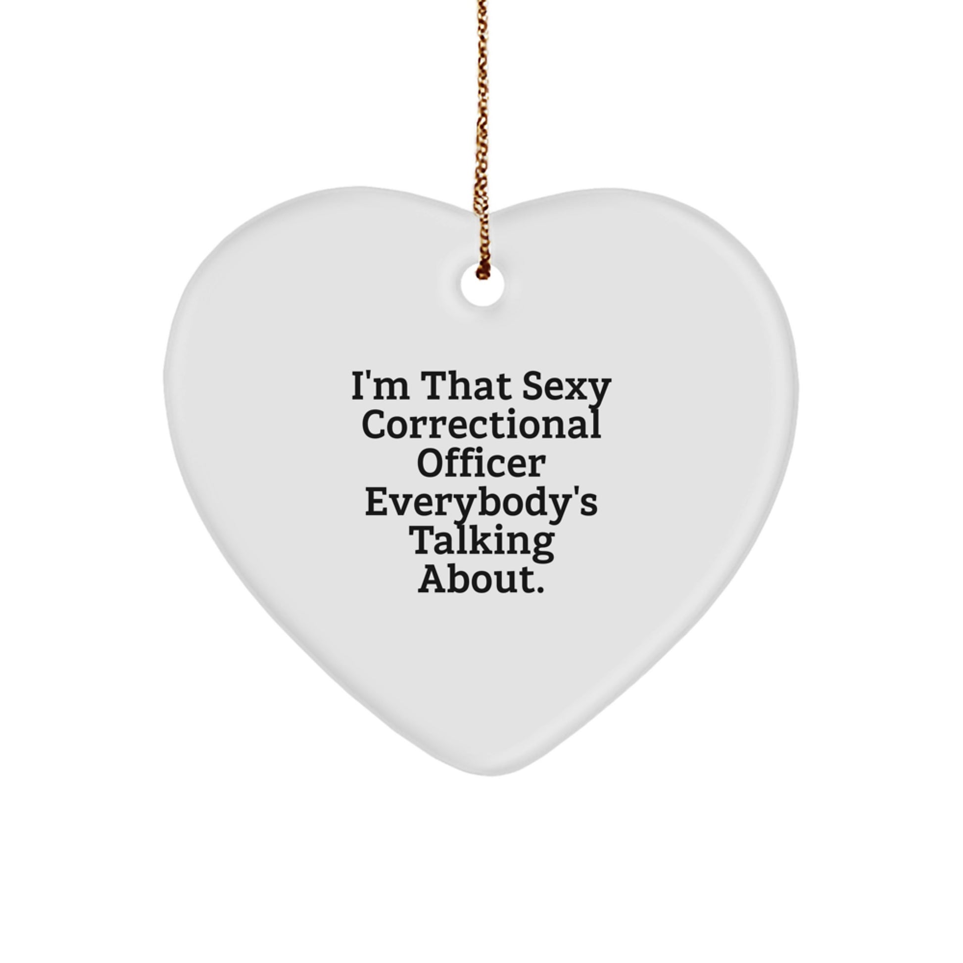 - Meet 'I'm That Sexy Correctional Officer Everybody's Talking About.' with this unique heart ornament, a perfect gift for fellow officers or a thoughtful keepsake for yourself. This ornament is crafted from durable MDF with a high-gloss plastic finish, ensuring long-lasting designs and vibrant colors. Stand out this Christmas with this one-of-a-kind Correctional Officer gift.