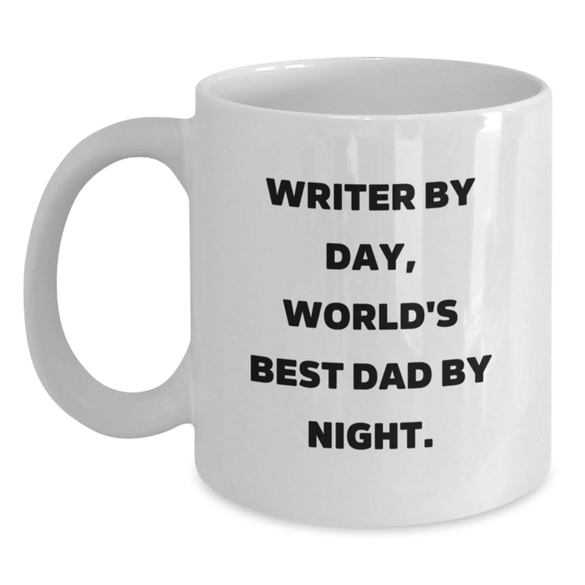 Are you a writer by day and a world's best dad by night? This funny white coffee mug is the ideal gift for your writer friend or family member who loves puns and humor. Made from ceramic, this 11oz or 15oz capacity mug is microwave and dishwasher safe, making it easy to use and clean.